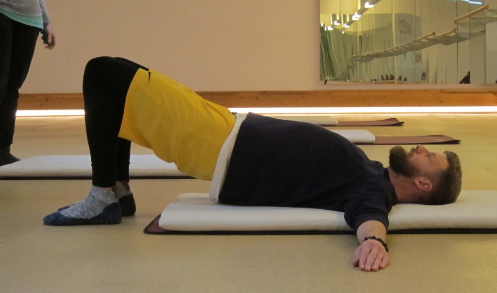 Als uns in der nächsten Stunde wiederum viel Theorie erwartete, dämmerte mir allmählich, dass es sich hier nicht nur um irgendein Training handelt. Ziel ist hier vielmehr, bestimmte neuronale Areale zu stimulieren und deren Funktionen dafür zu nutzen, die gewünschten Ziele im Bewegungsapparat zu erreichen. Das ist eine komplexere Herangehensweise als die gewohnten und bekannten Formen von u. a. Physiotherapie. Denn es geht im NZT nicht nur darum, einen bestimmten Bereich der physischen Aktivität zu bereichern. Ziel ist eine veränderte – komplexere – Sicht auf unsere Fähigkeit sich zu bewegen und im Zuge des Trainings Ziele zu definieren und zu erreichen. Das funktioniert gleichermaßen für den Leistungssportler wie auch für neurologisch geforderte Physiotherapie-Patienten. Dabei wird das Rad nicht wirklich neu erfunden. Viele der Übungen sind aus anderen Disziplinen bekannt (Kampfsport, Logopädie, Yoga, Taiji/Qi Gong …). Was ich hier jedoch anders empfinde, ist, dass die Selbsteinschätzung eine große Rolle spielt. So ermunterte uns der Trainer Konstantin vor fast jeder Übung, die jeweilige physische Ausgangslage zu erfassen. Für mich ist es eine große Herausforderung, diese Art, mit mir umzugehen, in meine Routinen zu integrieren. Aber wie bei vielen Veränderungen ist es einfach mal gut anzufangen. Ich muss ja nicht gleich ein täglich halbstündiges Programm in meinen ohnehin schon üppig gefüllten Tagesablauf integrieren.