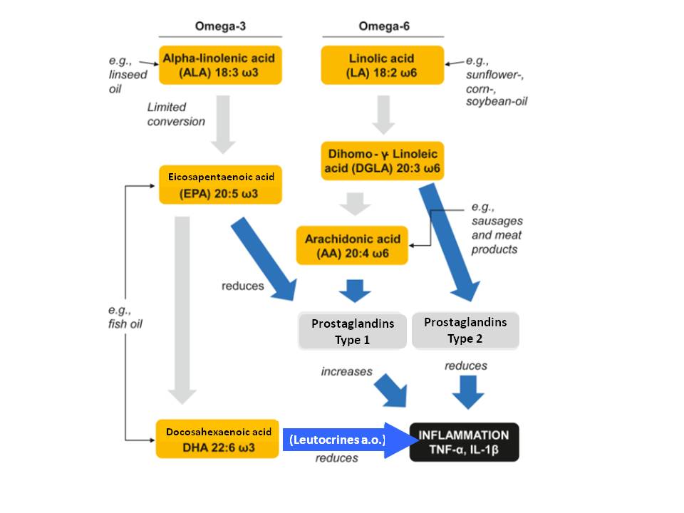 Wir haben an dieser Stelle schon öfter auf die positive Wirkung eines gesunden Verhältnisses von Omega 6/Omega-3-Fettsäuren in der Ernährung hingewiesen. Dieses sollte zwischen 1,5:1 – 2:1 liegen. Die hier vorgestellte Übersichtsarbeit unterstreicht diese Empfehlung wieder einmal.